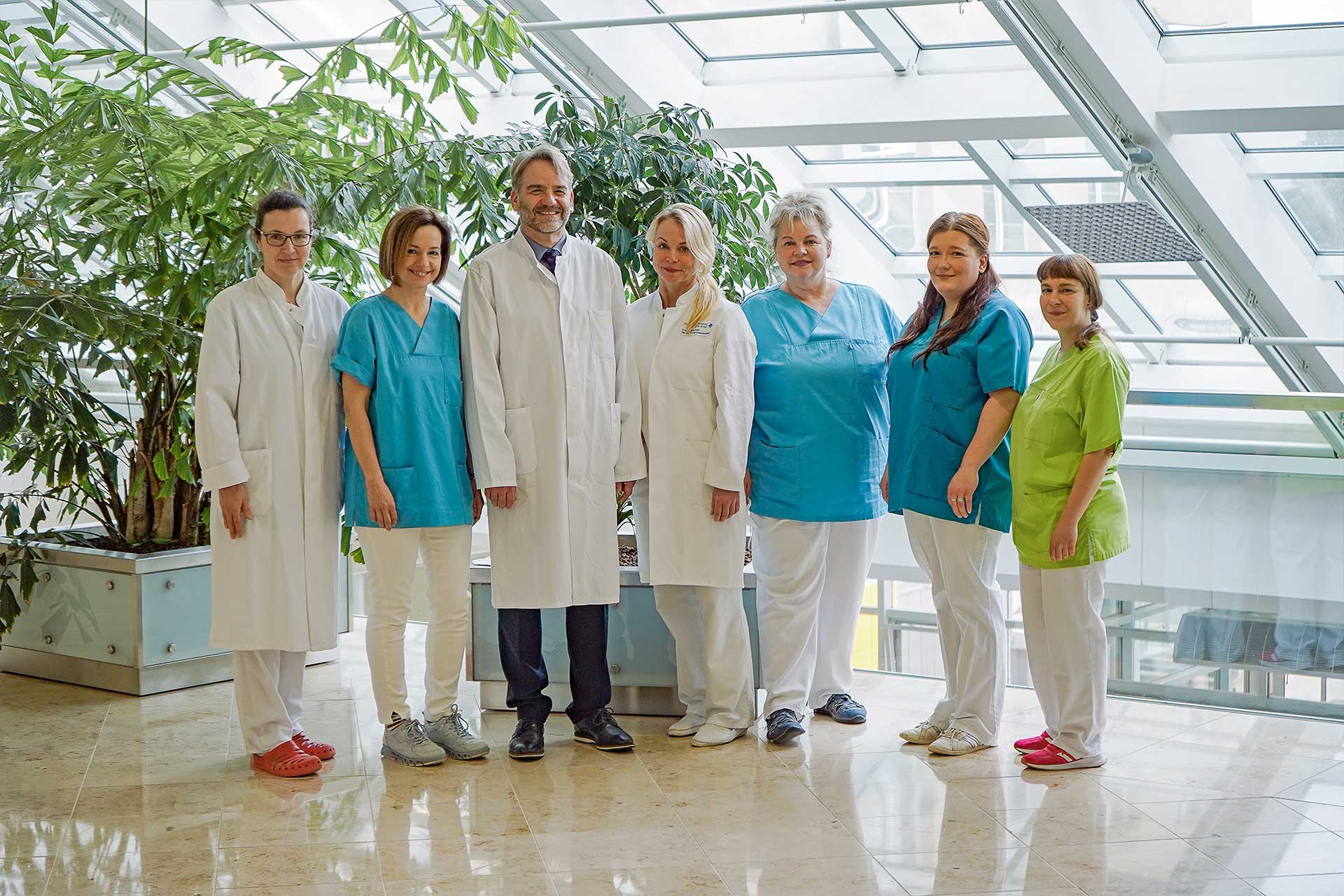 Von links nach rechts: Marit Kunze, Apothekerin; Sylke Schlehahn, Diabetesberaterin; Dr. Peter Gottschalk, Ärztlicher Direktor, Chefarzt der Klinik für Innere Medizin 2; Sandra Gottschalk, Leiterin Ernährungsteam; Sabine Tüshaus, Wundmanagement; Kristin Möckel, Firma Medirest, Diätassistentin; Nicole Kindermann, Versorgungsassistentin, Ernährungsberatung