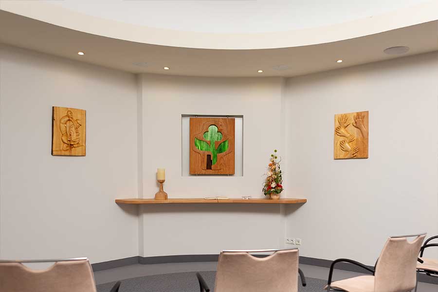 Im Krankenhaus Greiz finden Sie im ersten Obergeschoss (Magistrale) einen Raum der Stille. Es ist ein interreligiöser Ort der Ruhe, der Einkehr und des stillen Gebets. Der Raum ist rund um die Uhr für Patienten und Angehörige frei zugänglich.